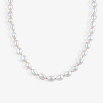 Pictured: The Winnie Knotted Hoop Earrings, Ocean Gold Vermeil Pearl Droplet Necklace, and the Asymmetrical Gold Vermeil Pearl Bracelet