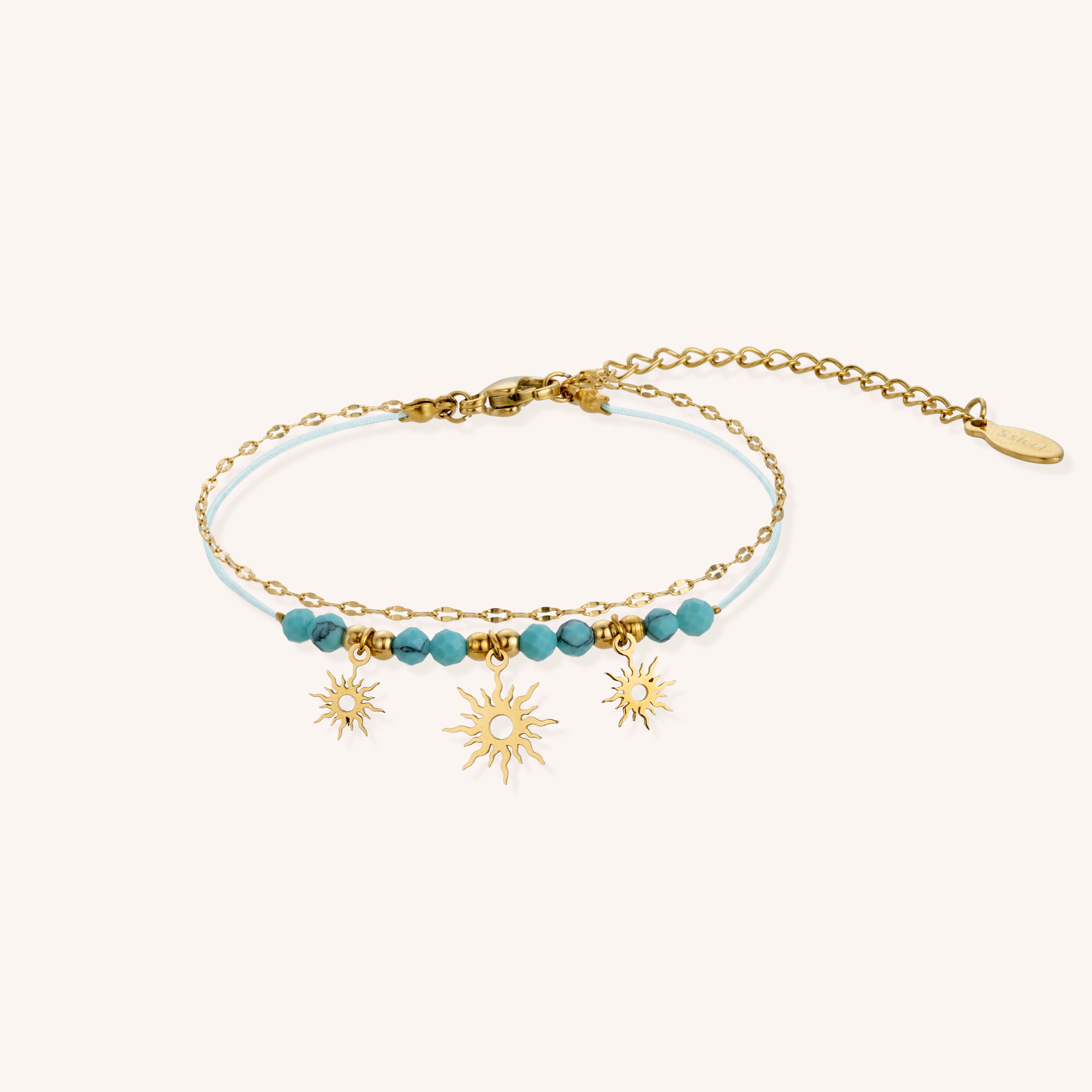 Gold Beads on Natural Leather Three Wrap Bracelet