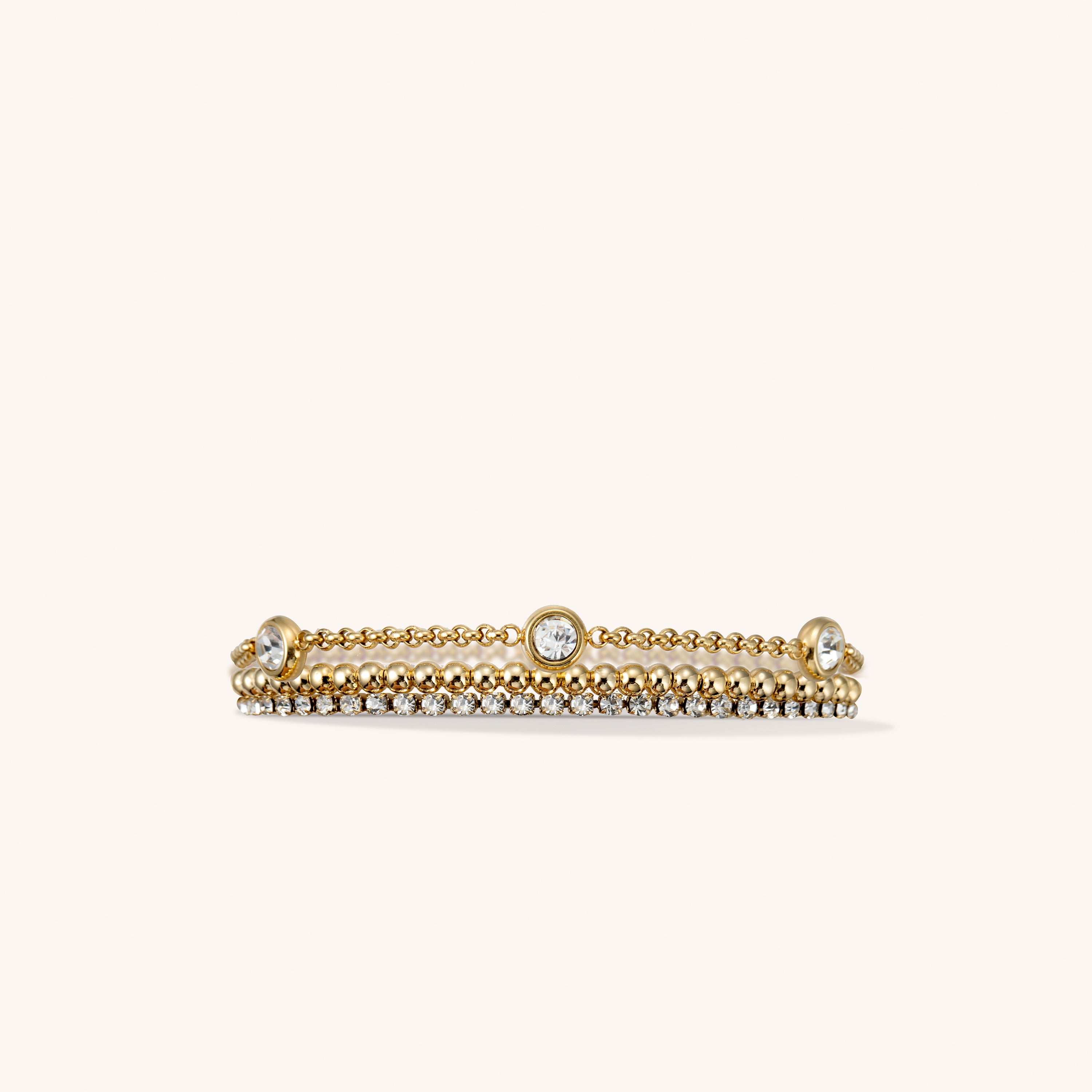 14K Gold Beaded Sphere Bracelet Stackable Set