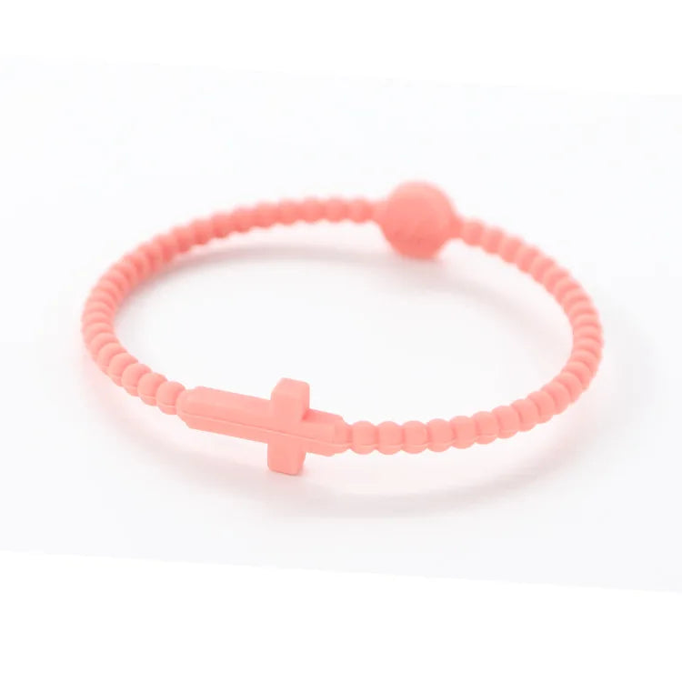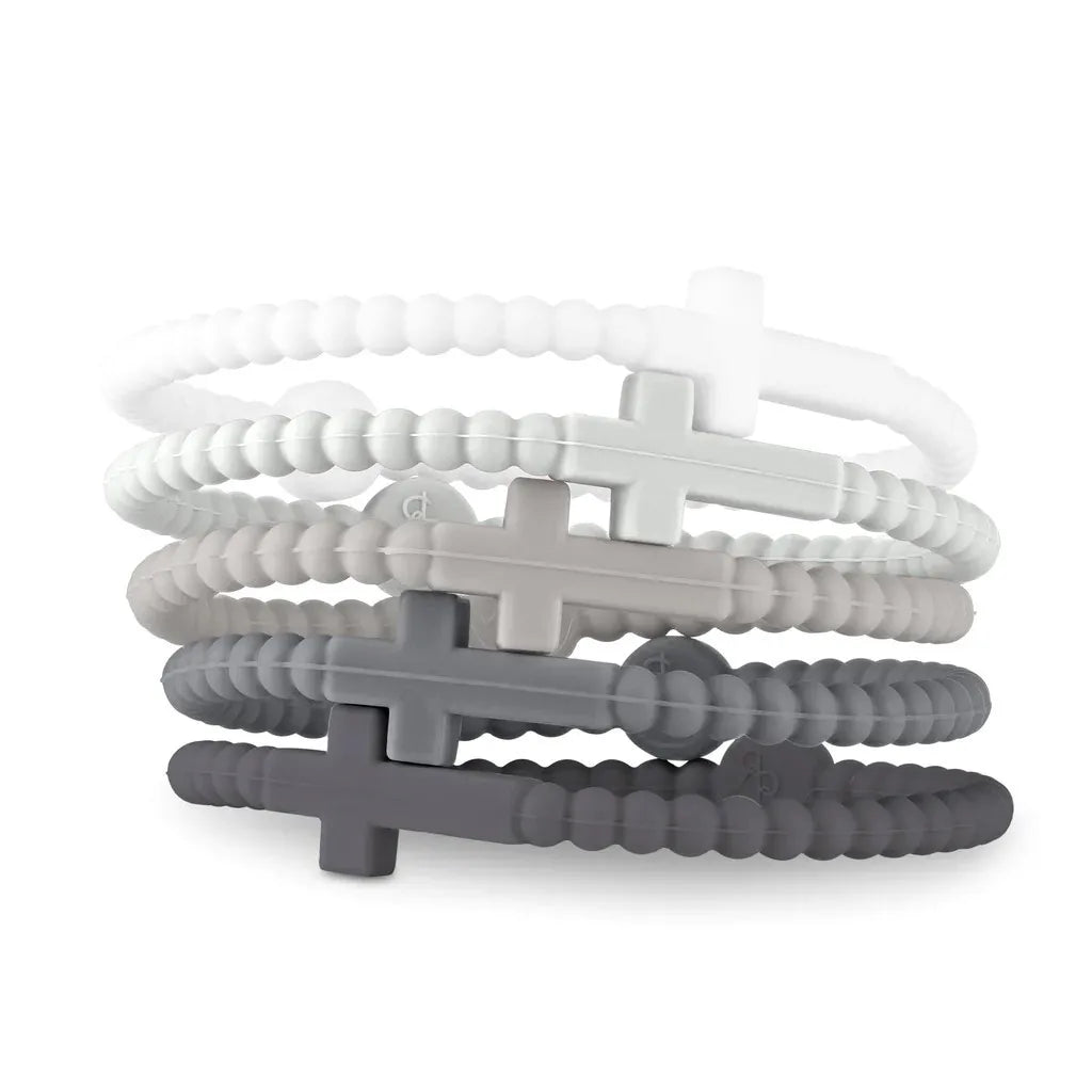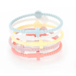 Five silicone friendship bracelets in soft macaron tones, each featuring a simple cross motif. Lightweight and comfortable for all-day wear, these make a sweet stackable set for gifting — or sharing with the people who matter most. Comes in a full color range to suit every wrist.