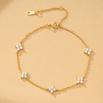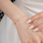Add a touch of luck to your look with our Lucky Clover Crystal Bracelet. Featuring a delicate four-leaf clover design adorned with sparkling cubic zirconia on an adjustable chain.