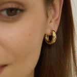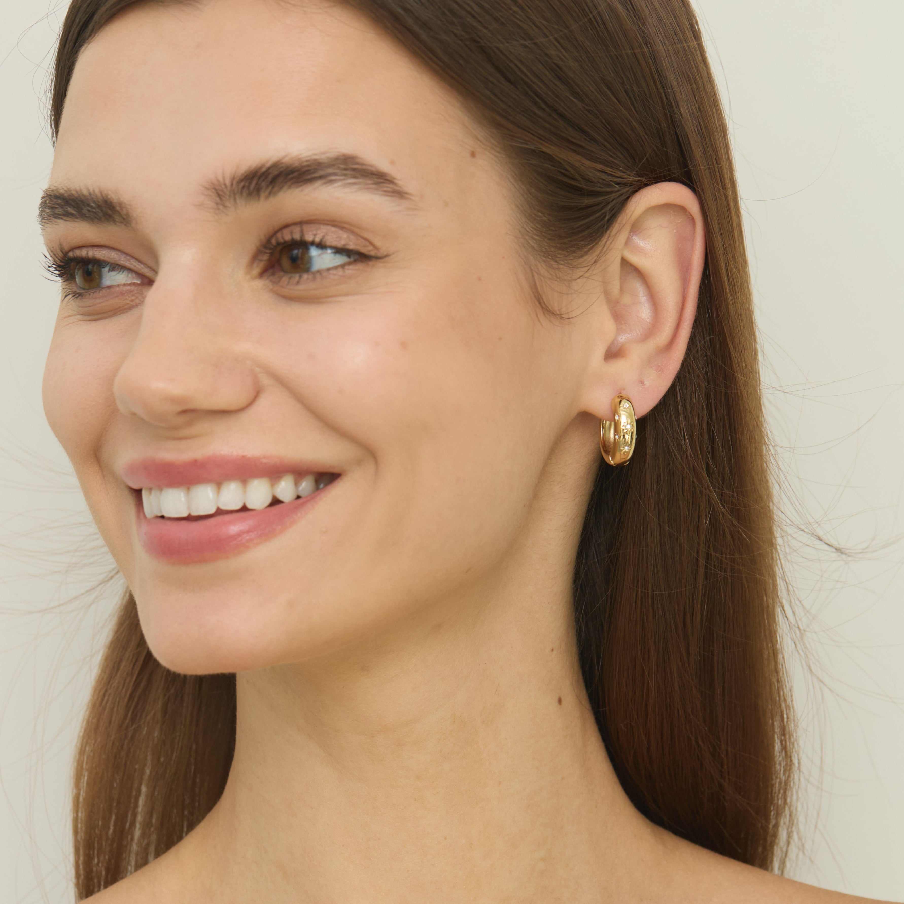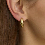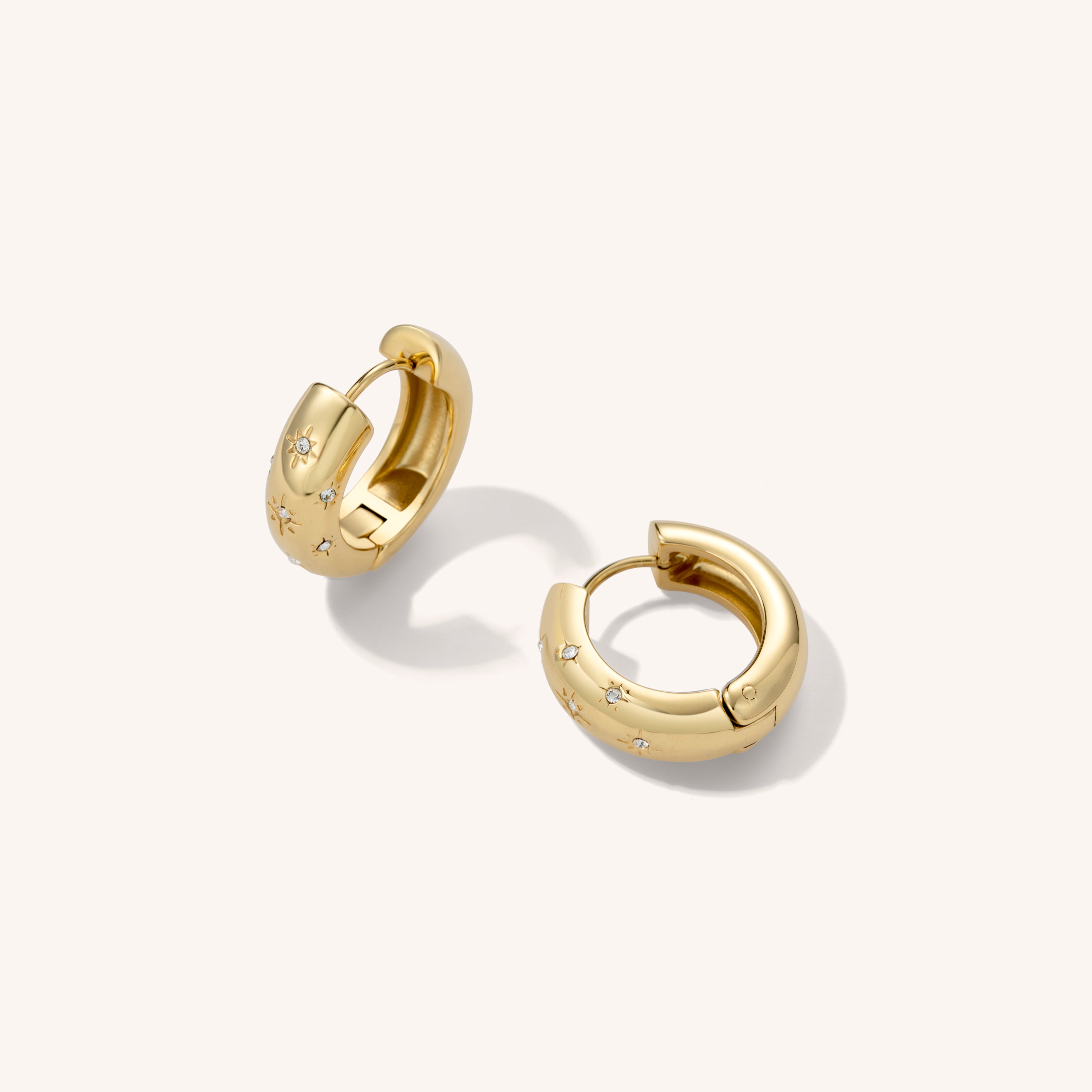 Chunky hoop earrings with micro-crystal details set in engraved stars. Finished in our waterproof 14K Gold plating for long-lasting wear.