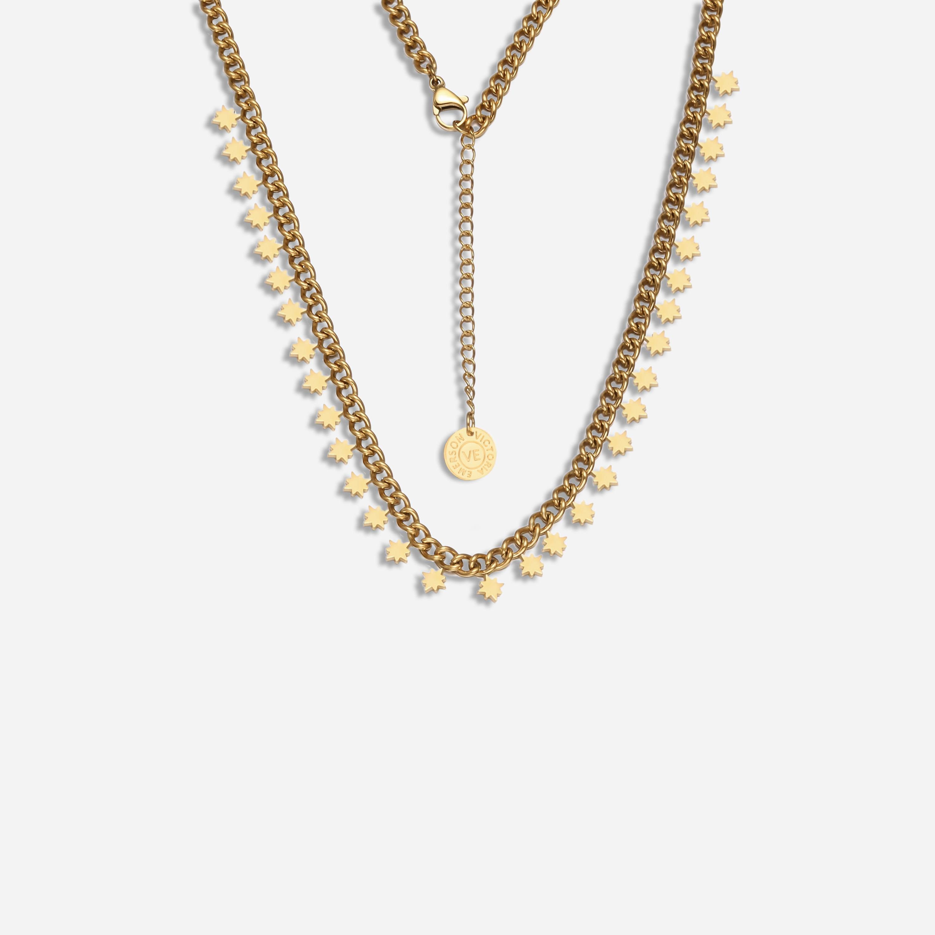The Chloee Star Necklace adds a playful sparkle to your look with its pretty star design that shines effortlessly. Perfect for brightening any outfit, this charming necklace brings a fun, celestial vibe wherever you go.