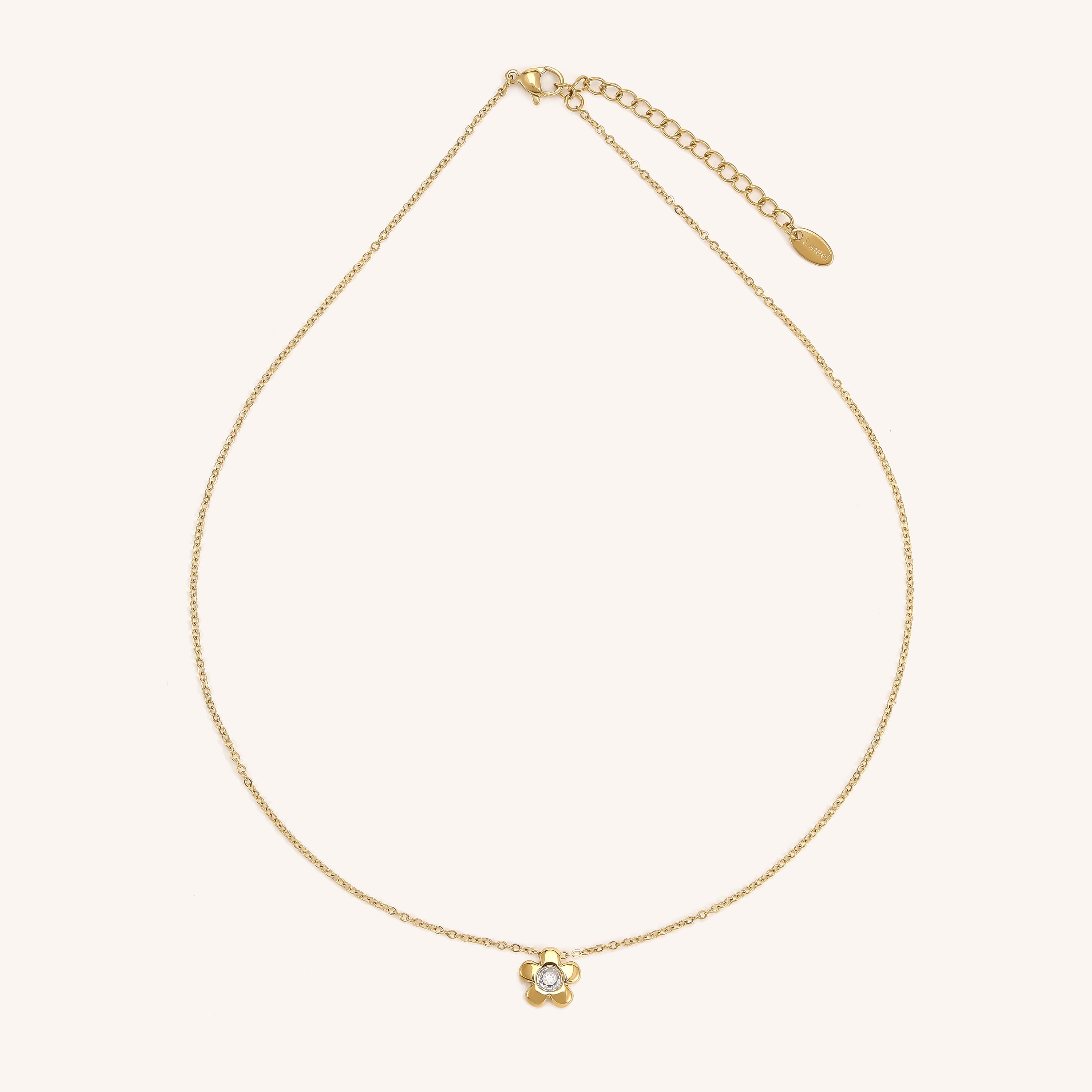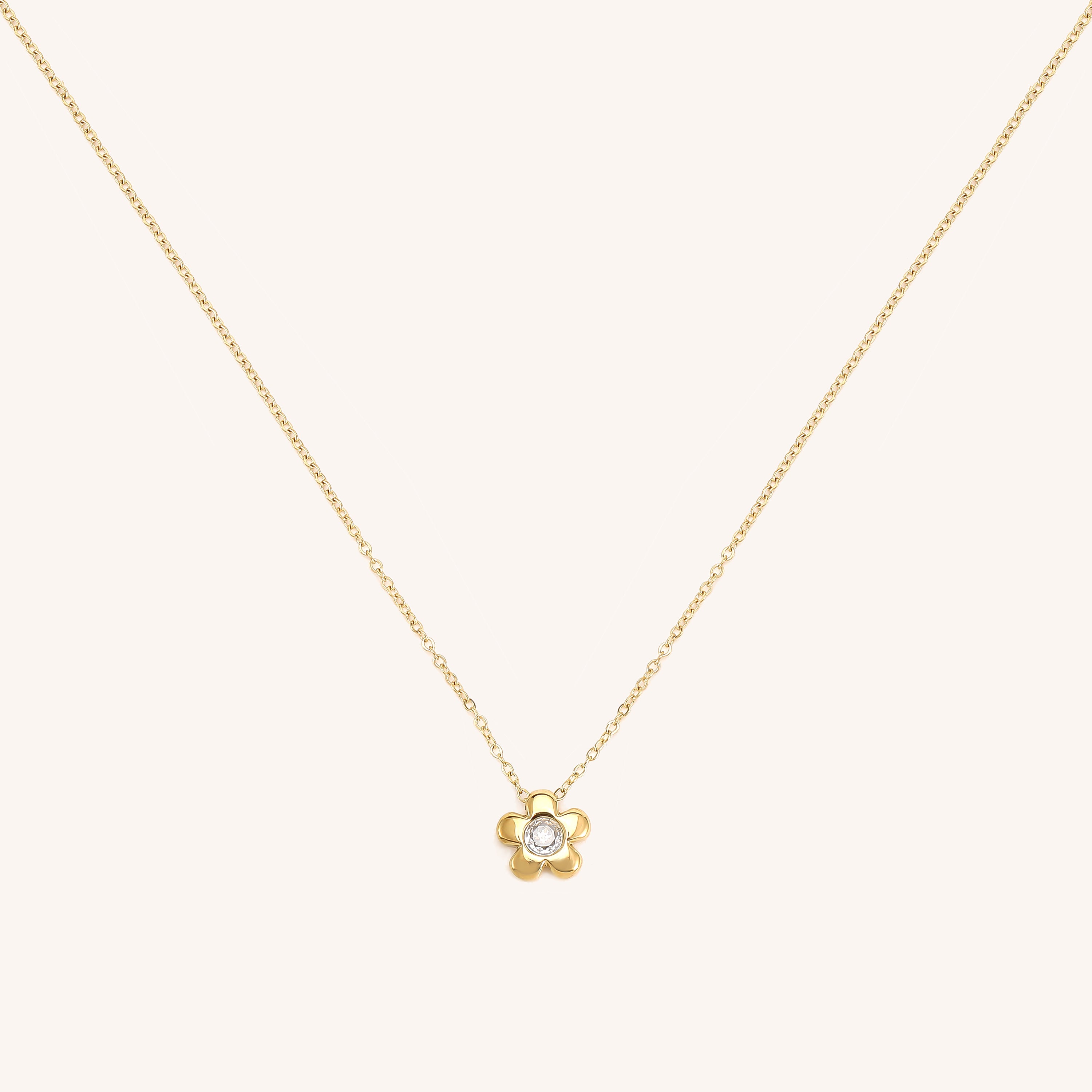 The Flora Necklace blooms with a simple, cute flower charm. Its playful design adds a fresh, lighthearted touch that’s perfect for brightening your everyday style.