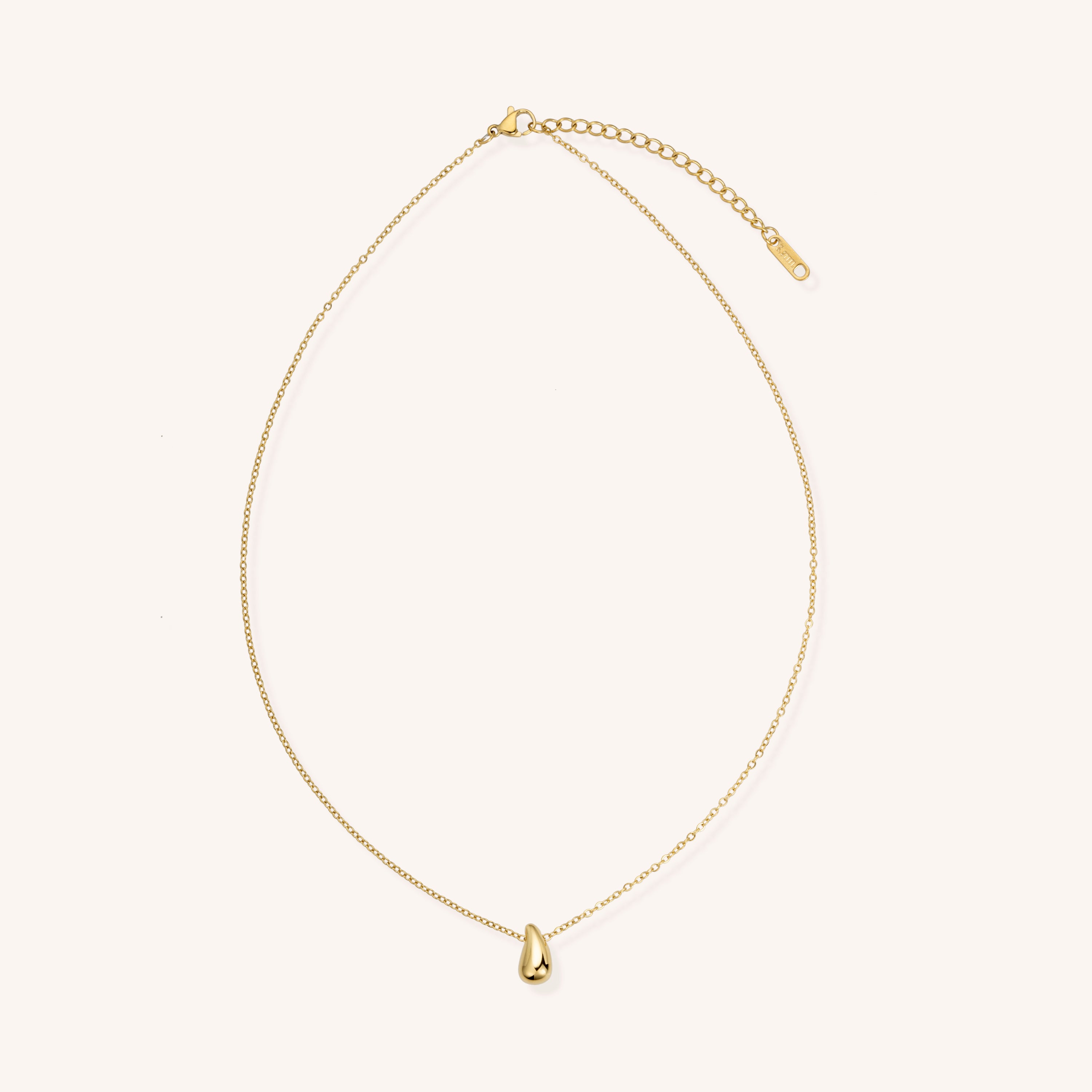 Catch the light with this lustrous Gold Droplet Necklace. A sleek, minimalist pendant that gleams with warmth and sophistication. Perfect for those who love a touch of shine without the fuss—effortless elegance that works from morning coffee to evening out.
