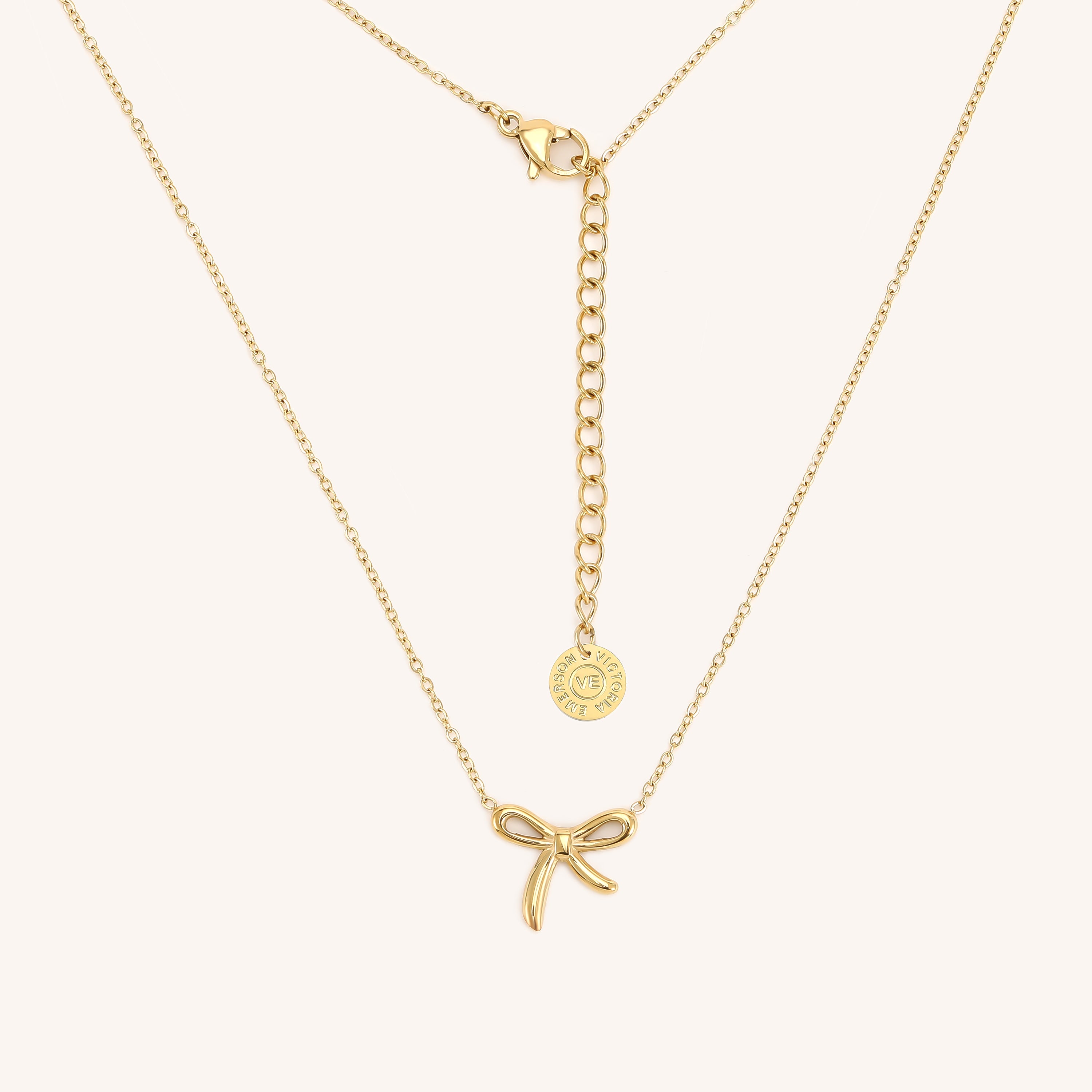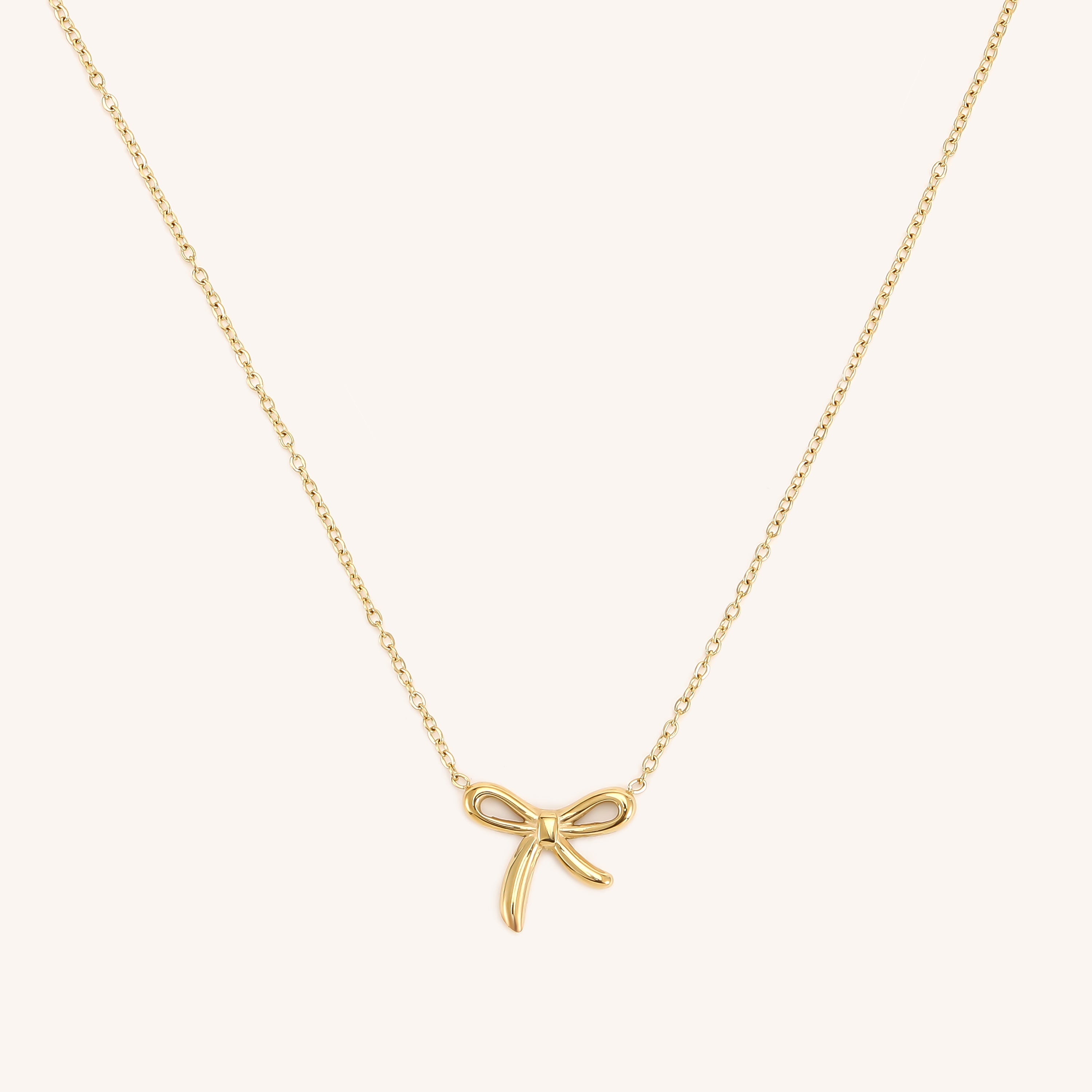The Hannah Bow Necklace sparkles with a pretty gold bow that adds a playful pop to any look. It's a charming and fun way to brighten your style.