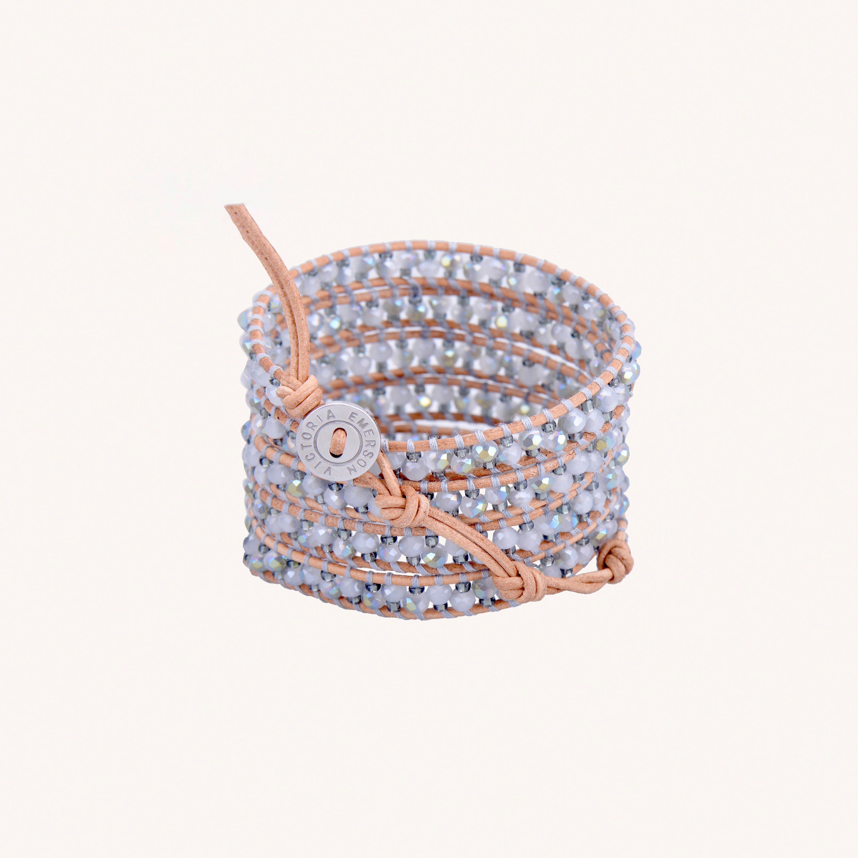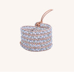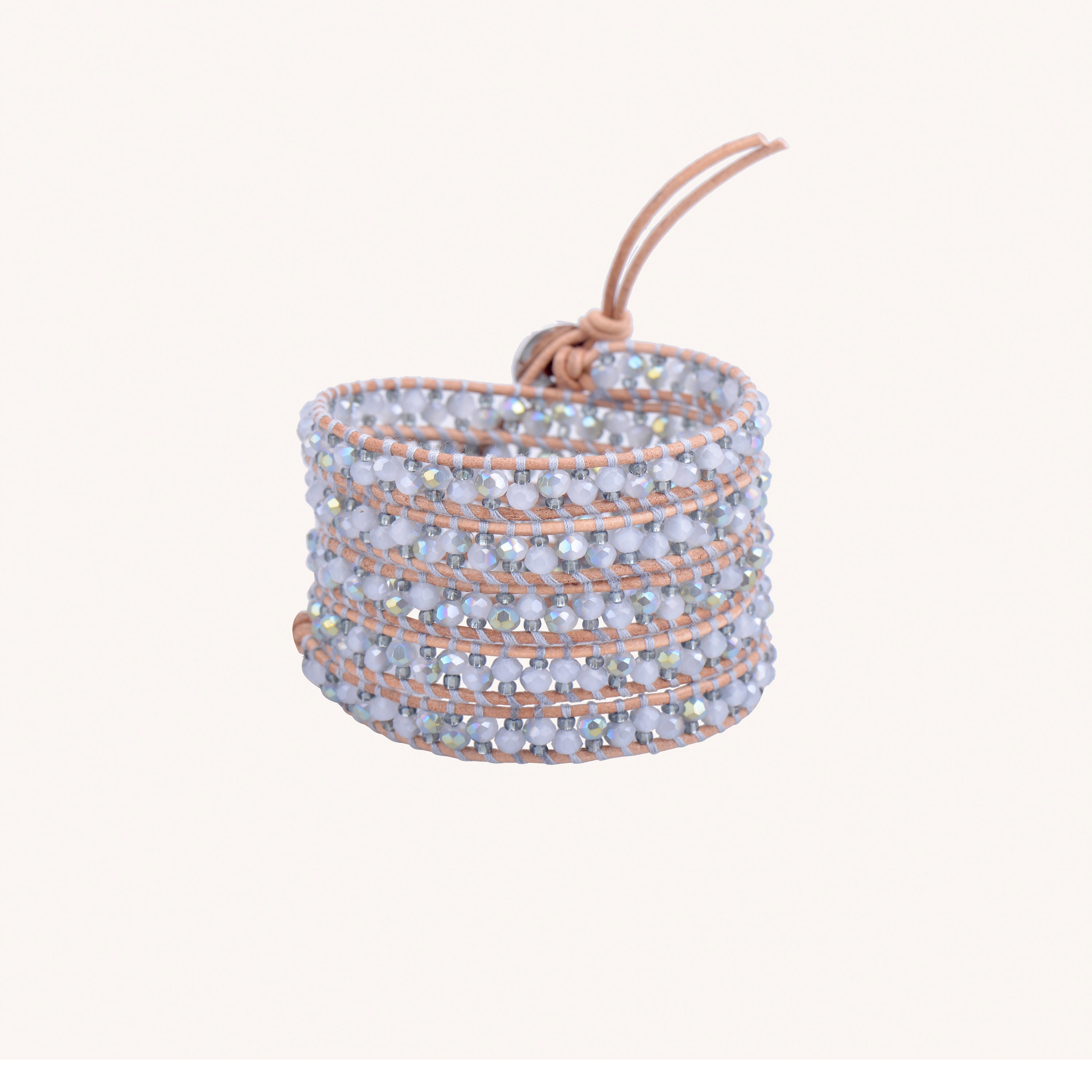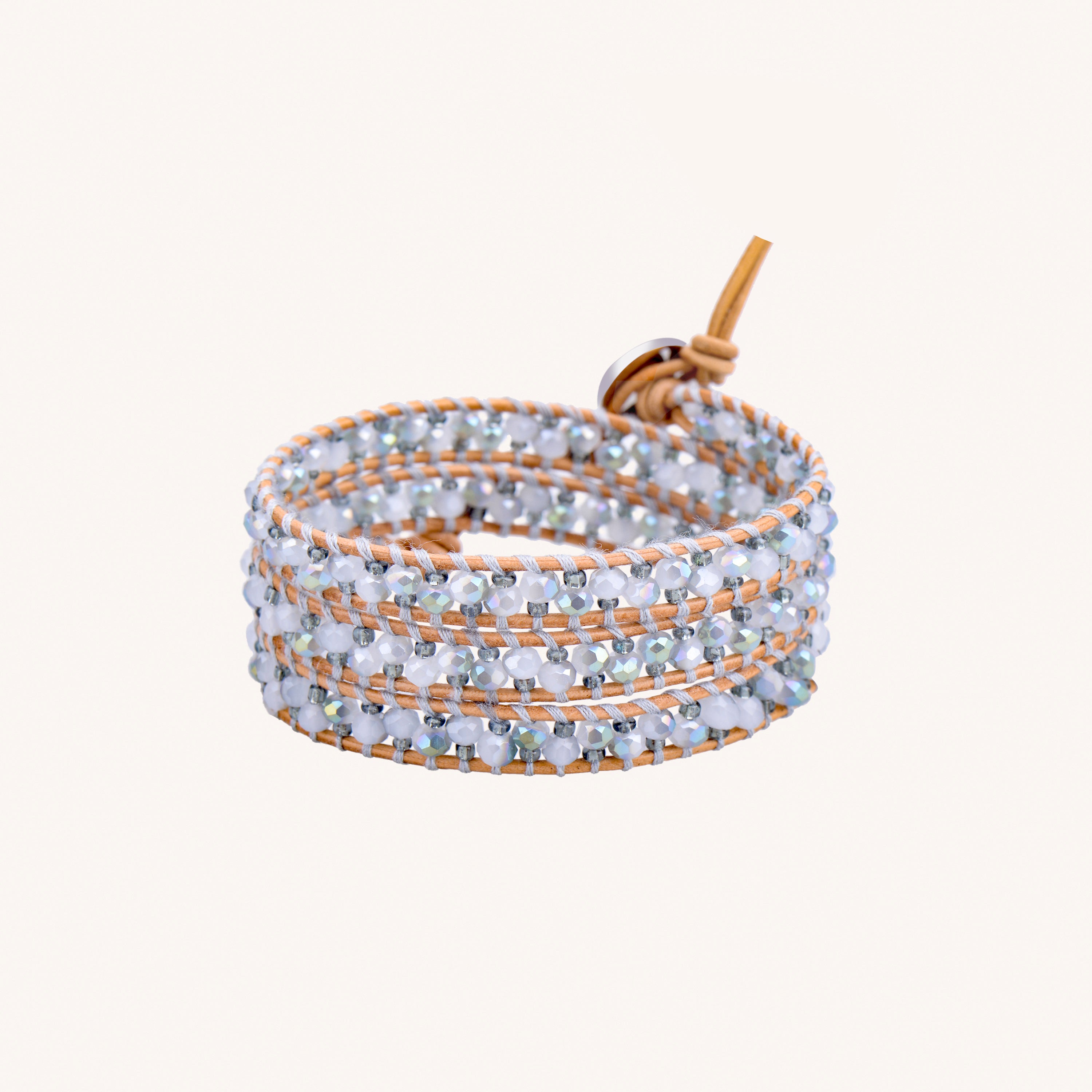 Introducing Large Silver Crystals - Natural Leather. Enjoy the luxurious feel of genuine leather with our wrap bracelet, available in 3 or 5 wrap lengths. Add a touch of elegance to your style.