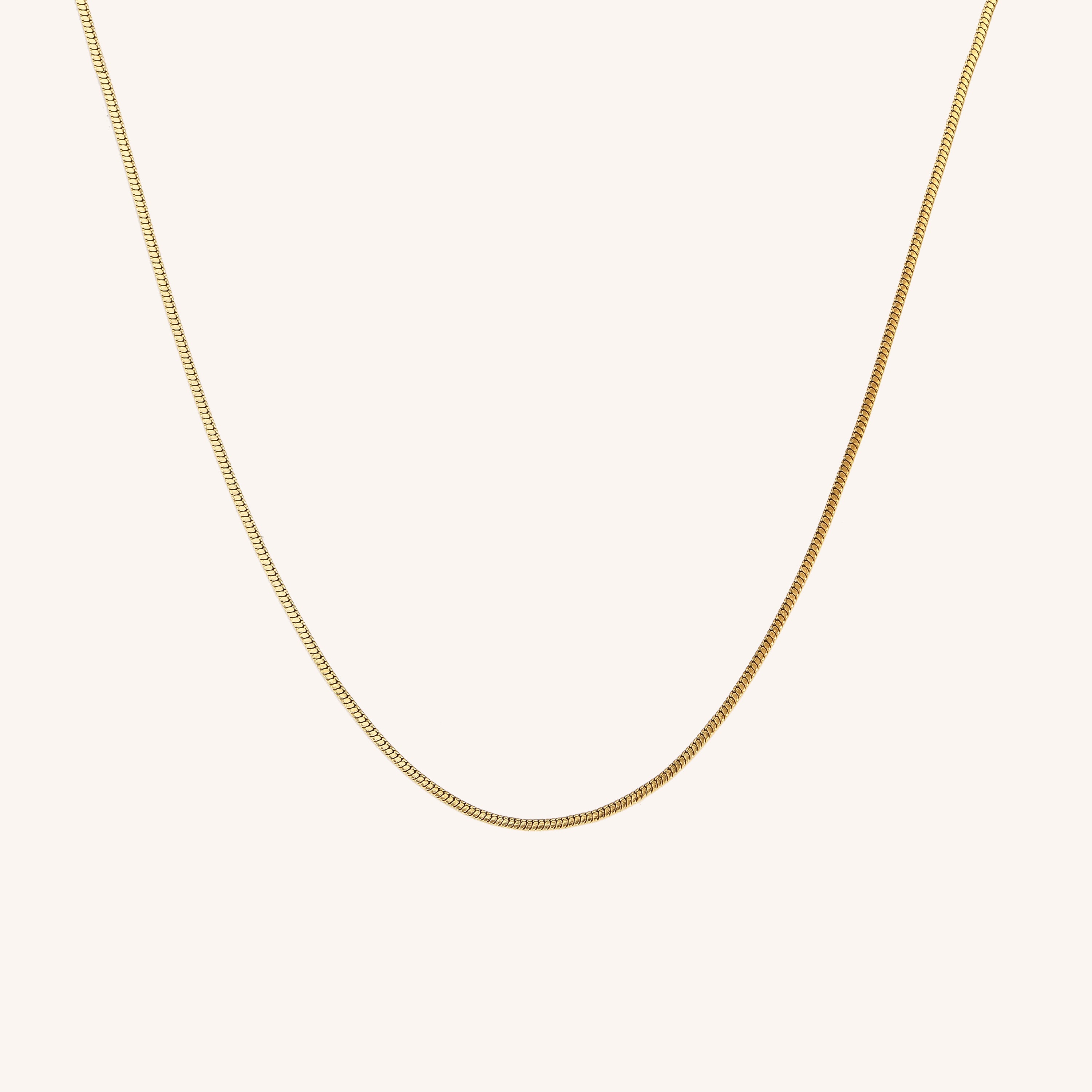 The Laya Snake Chain Necklace combines timeless elegance with contemporary design. Crafted with a smooth, fluid snake chain that drapes beautifully against the skin, this piece transitions effortlessly from day to evening wear. The refined construction ensures durability while maintaining a lightweight feel, making it an ideal layering piece or standalone statement.