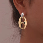 Bold yet refined, the Linked Oval Hoop Earrings feature a sculptural double-circle design that creates the look of stacked hoops in one statement piece. Crafted from stainless steel and finished in 14K gold plating, these chunky geometric earrings add effortless impact to everyday outfits while elevating party and evening looks. Lightweight and comfortable for all-day wear, they’re a modern essential designed to stand out.