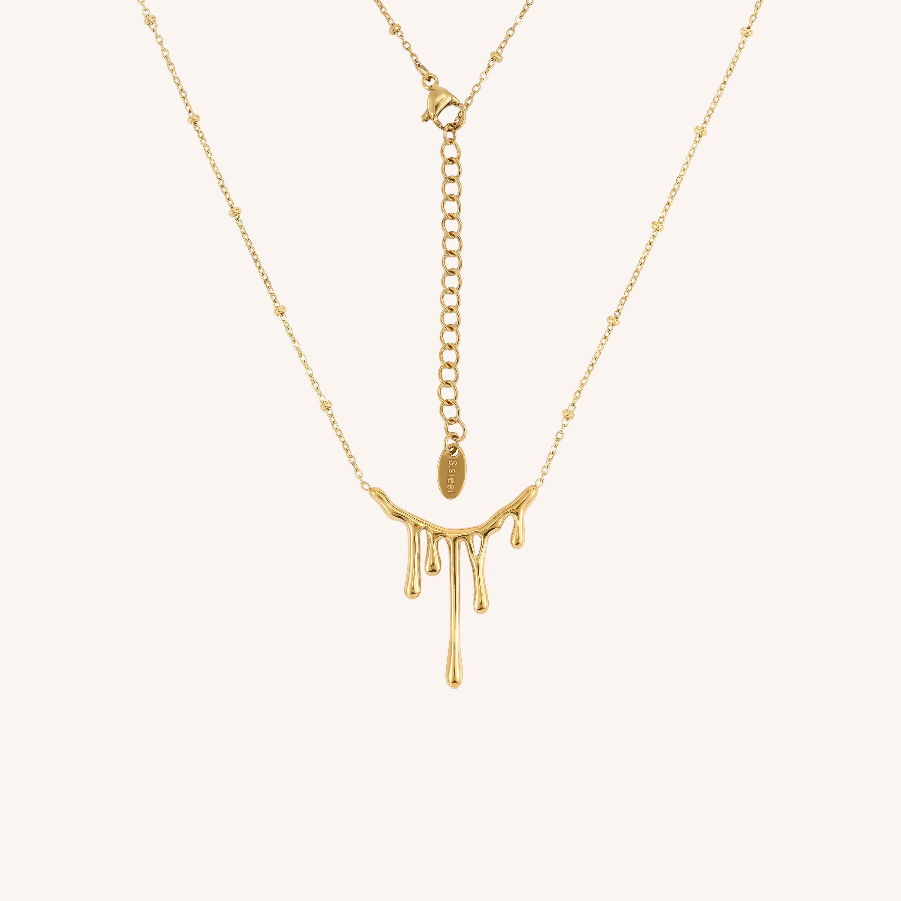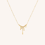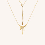 Embrace fluid elegance with this striking Melting Gold Necklace, where contemporary design meets timeless luxury. The sculptural pendant features a mesmerizing molten aesthetic that catches light beautifully, creating an ever-shifting play of dimension and depth.