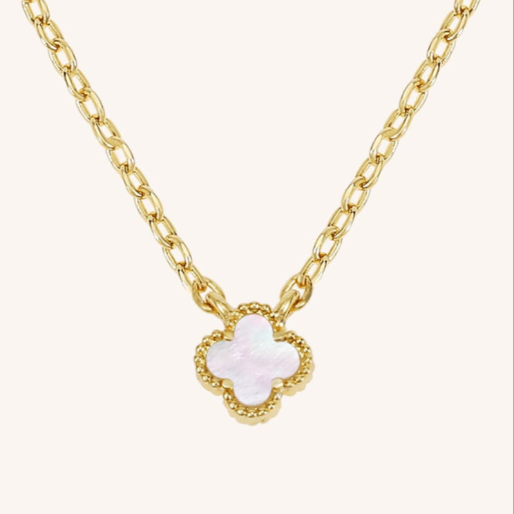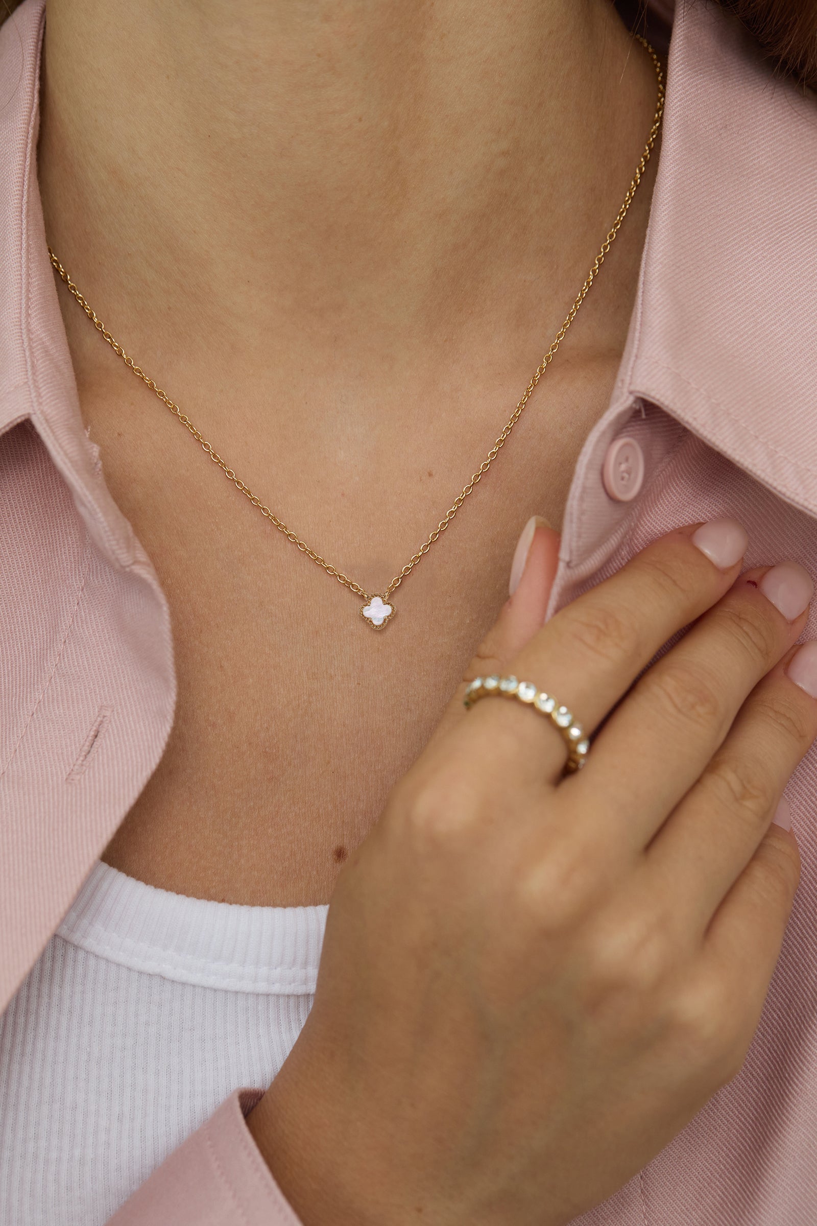 The Mother of Pearl Mini Clover Necklace is the perfect dainty accessory to add a playful pop of luck to any outfit. Its delicate clover design catches the light beautifully, making it an easy favorite for everyday wear or layering fun.