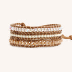 Neutral Crystals on Natural Leather Three Wrap Bracelet