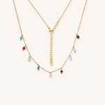 The Rachel Holiday Necklace dazzles with colorful ornament-inspired shine. This festive beauty radiates holiday sparkle and charm in vibrant hues. Wear your celebration around your neck with this charming piece.