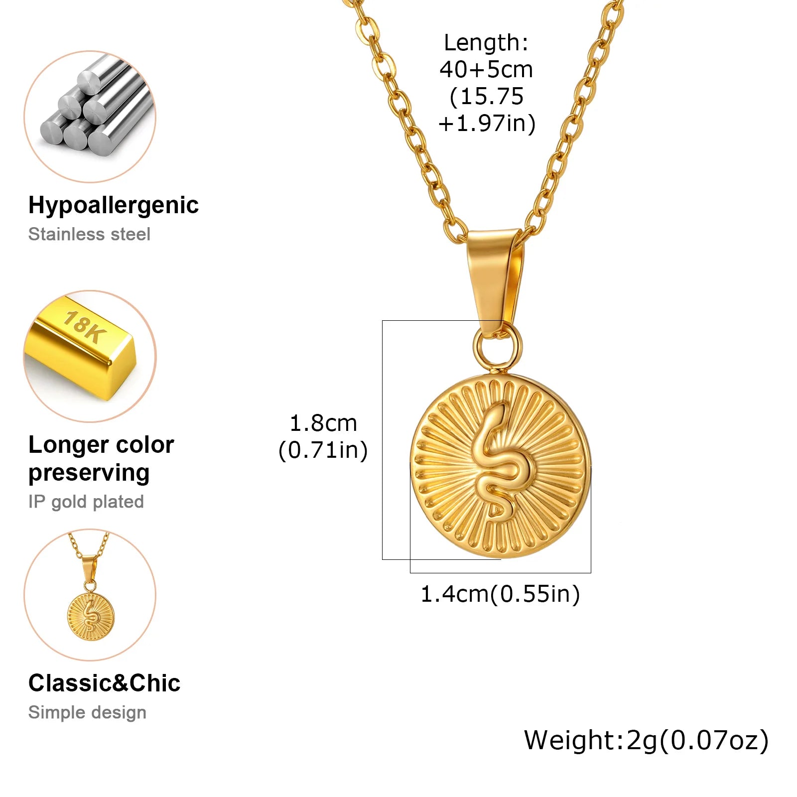 Round Disc Handmade Animal Snake Pendant Necklace, Women's Stainless Steel Delicate New Jewelry Tarnish Free