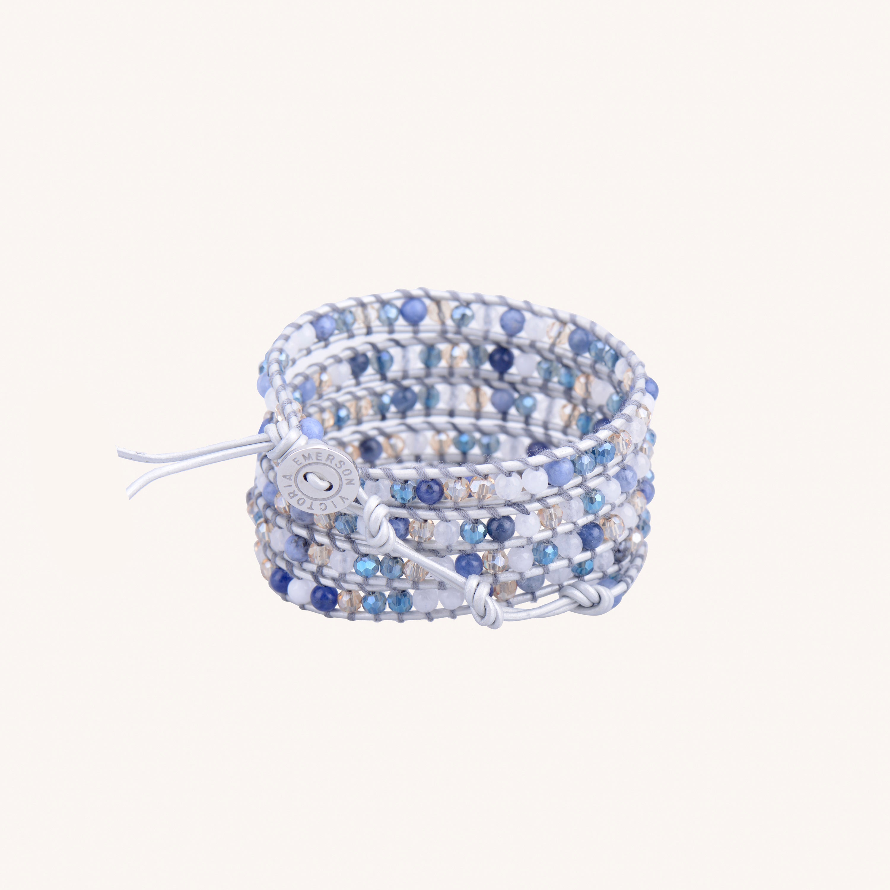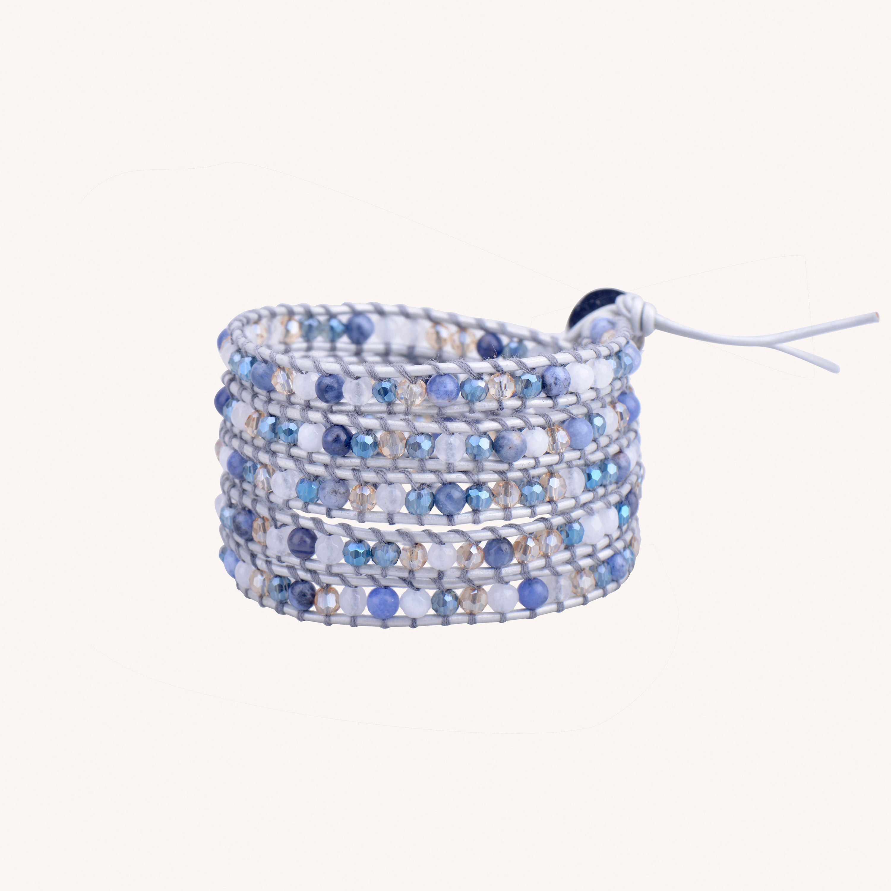 Introducing Sky Crystals - Gray Leather. Enjoy the luxurious feel of genuine leather with our wrap bracelet, available in 3 or 5 wrap lengths. Add a touch of elegance to your style.