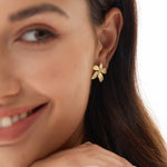 Beautifully hand-carved flowers made with 14K gold. Add some warmth and whimsy to your looks with these light-weight statement studs. Available in silver and gold.