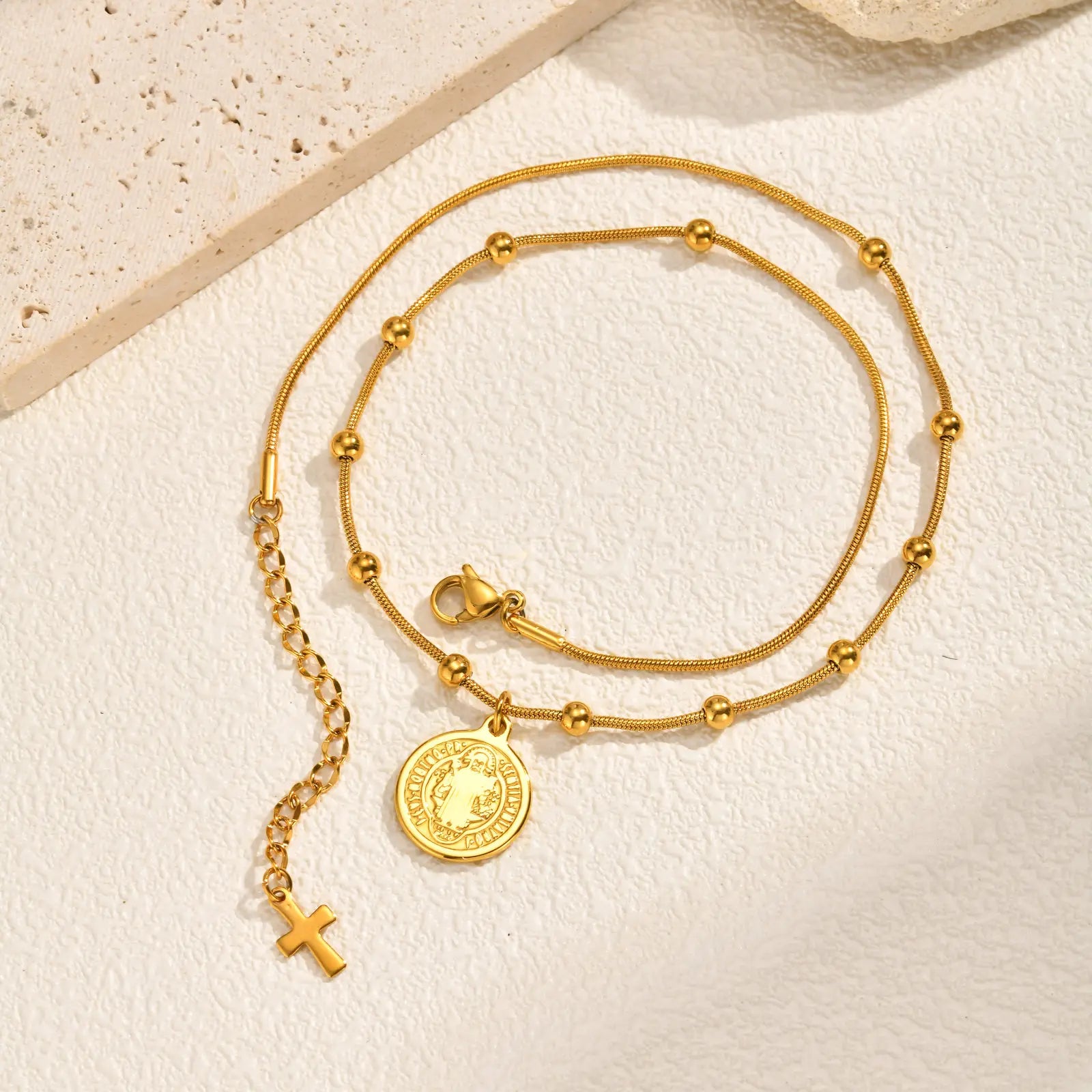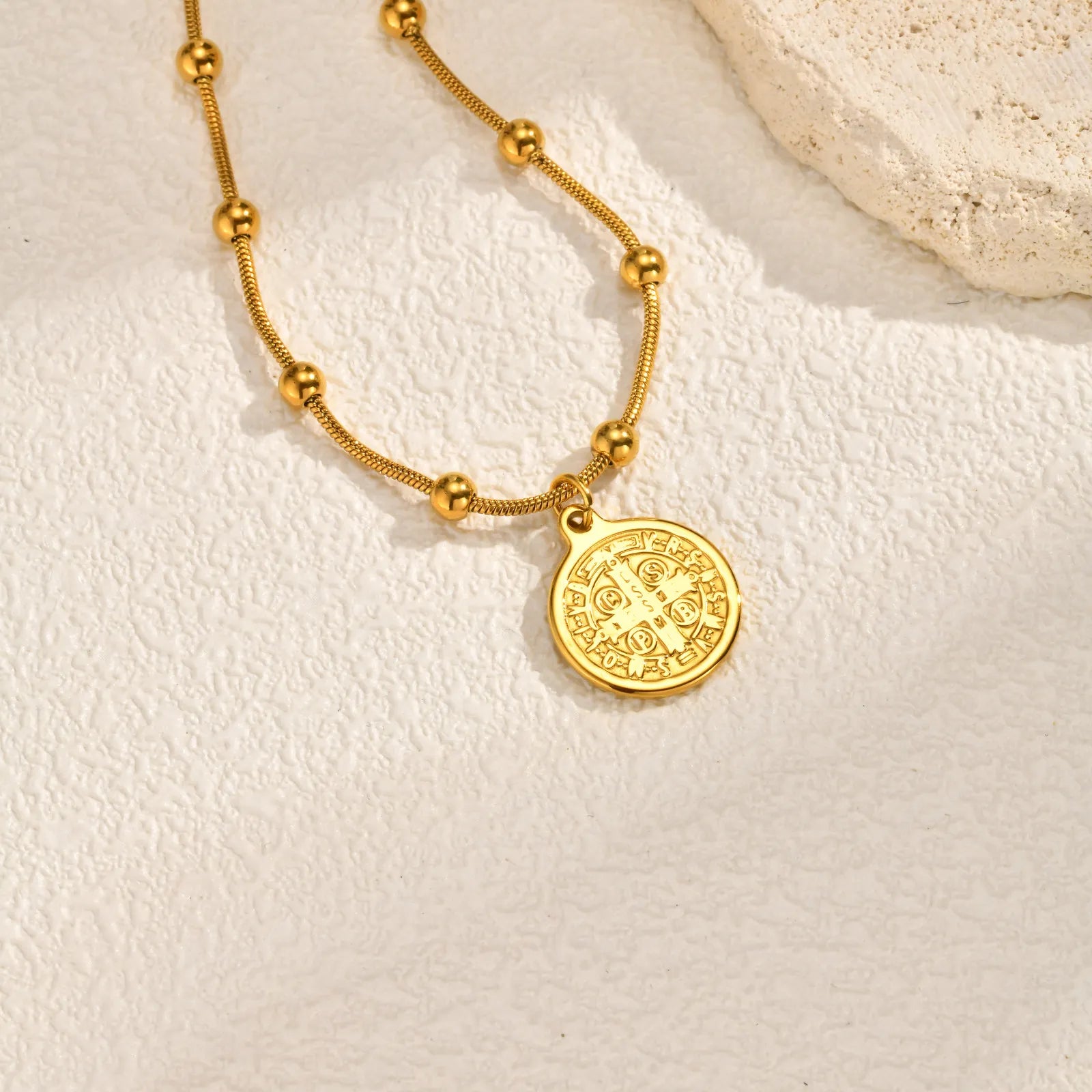 A beautiful symbol of faith - our Saint Benedict Medal Necklace. This meaningful piece features the traditional Saint Benedict medal on a delicate beaded chain.